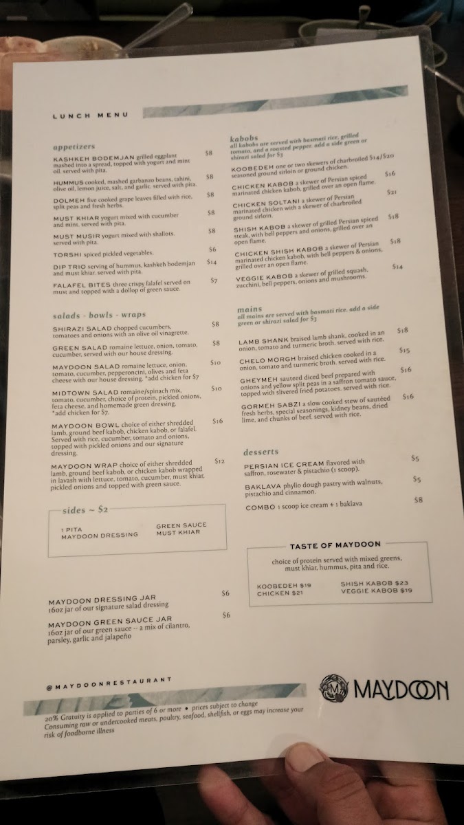 In addition to its culinary offerings, Maydoon is surprisingly affordable given its upscale vibe, which is ideal for those looking to enjoy a lavish meal without breaking the bank. The generous portions and delicious flavors ensure you'll leave more than satisfied—possibly with leftovers to savor at home!