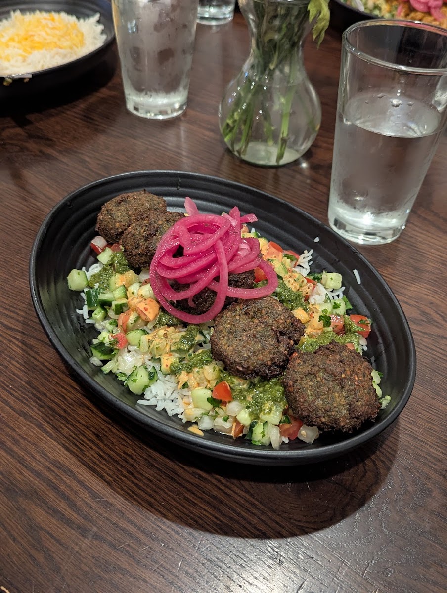 Vegetarians will equally find joy in the Zereshk Polo, a saffron and barberry rice dish that comes either as a vegetarian delight or with succulent braised chicken or lamb shank, starting at $11.00. If you’re looking for variety, the Taste of Maydoon is a perfect choice, combining your selected protein with fresh mixed greens, hummus, and warm pita, all for just $28.00. It's a symphony of tastes that orchestra a delightful dining experience, and trust us, the flavours harmonize beautifully.